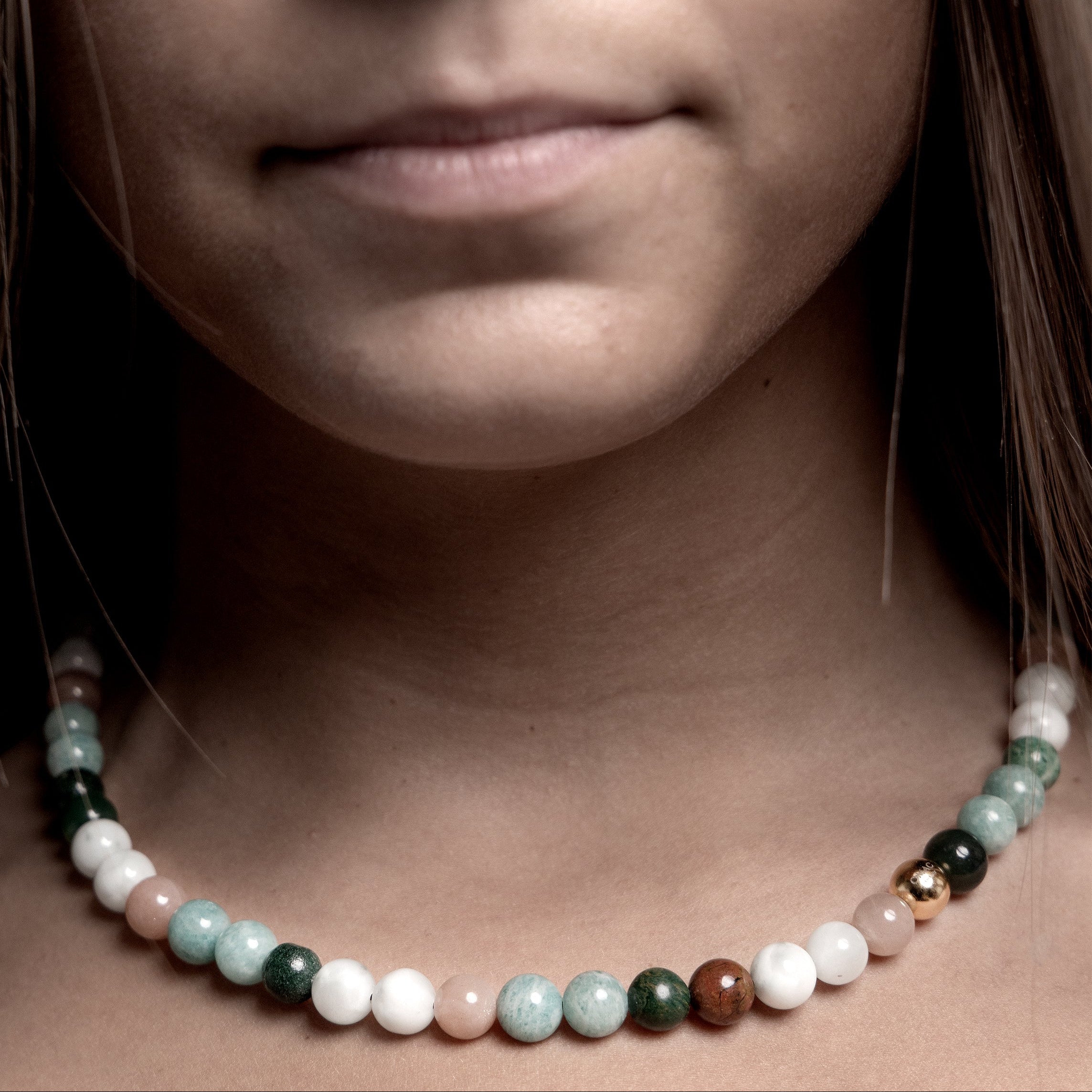 Normal pris 749,00 krUdsalgspris 749,00 kr Normal prisEnhedspris / perEmerald Breeze Vores håndlavede halskæde "Emerald Breeze" har en harmonisk farvekombination af grønne, turkise og jordnære nuancer, som giver en frisk og naturlig elegance. Denne halskæde...